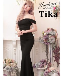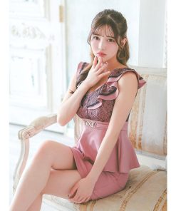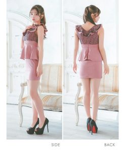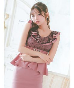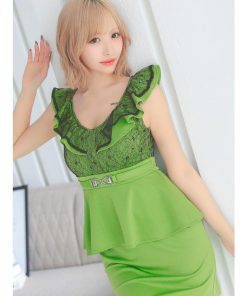 Tika キャバ ドレス キャバドレス ミニ 大きいサイズ ノースリーブ フリル袖 ブラックレース 切り替え ウエストベルト ペプラム ストレッチ タイトミニドレス 5L 4L