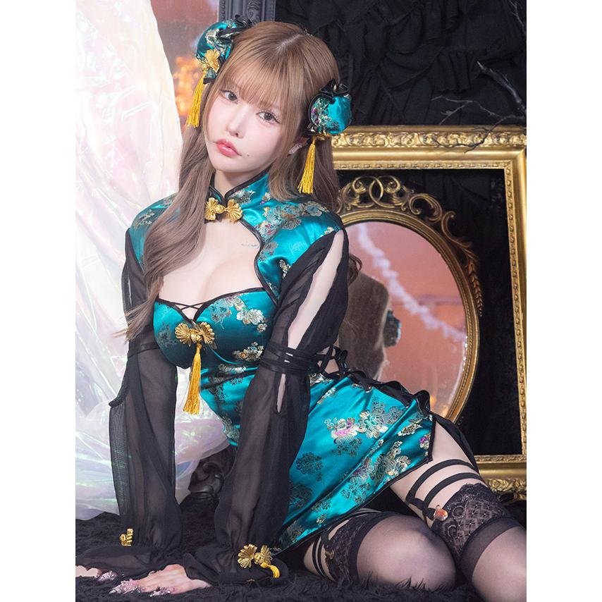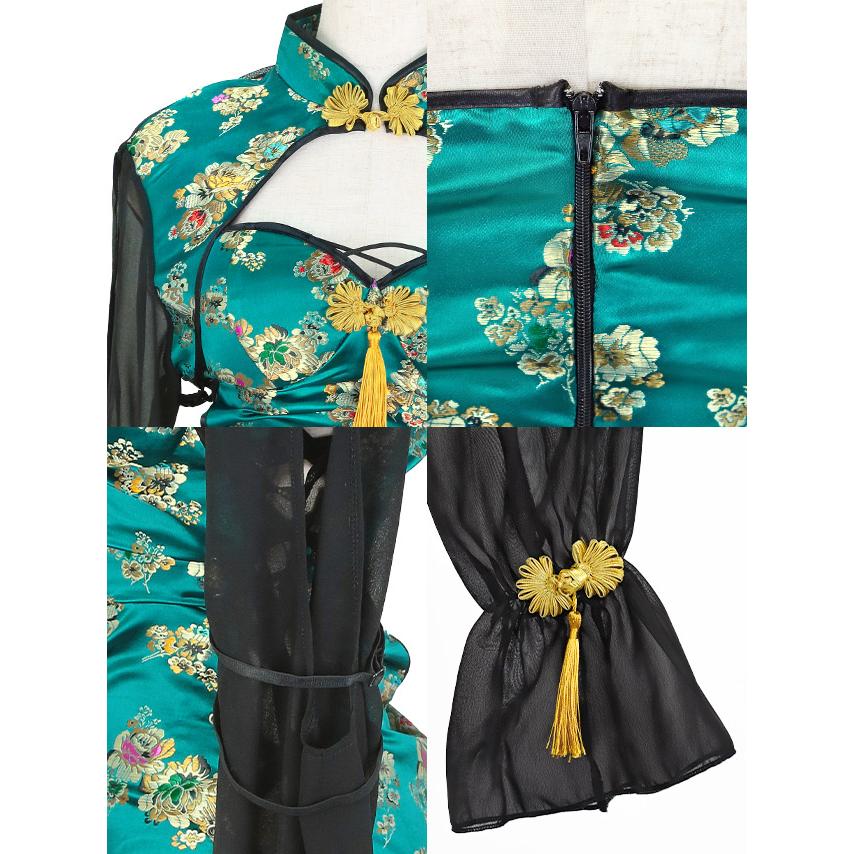 Tika コスプレ チャイナ チャイナ服 セクシー タイト 編み上げ グリーン 衣装 仮装 コスチューム ハロウィンコスプレ ミニ丈 チャイナドレス