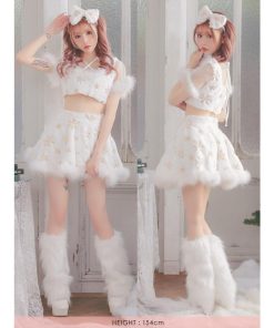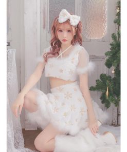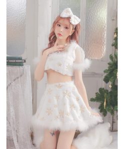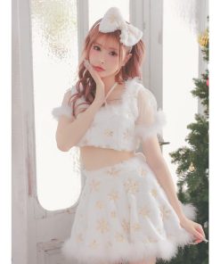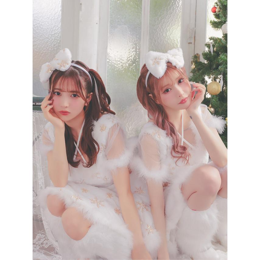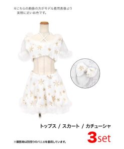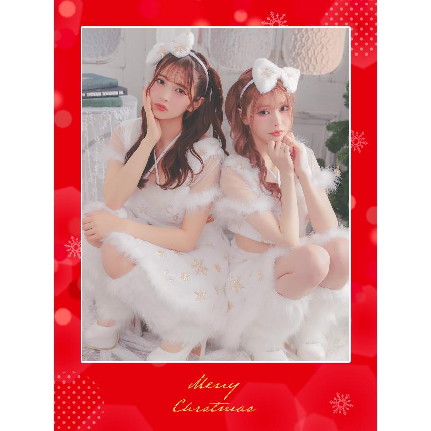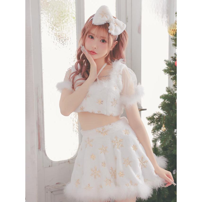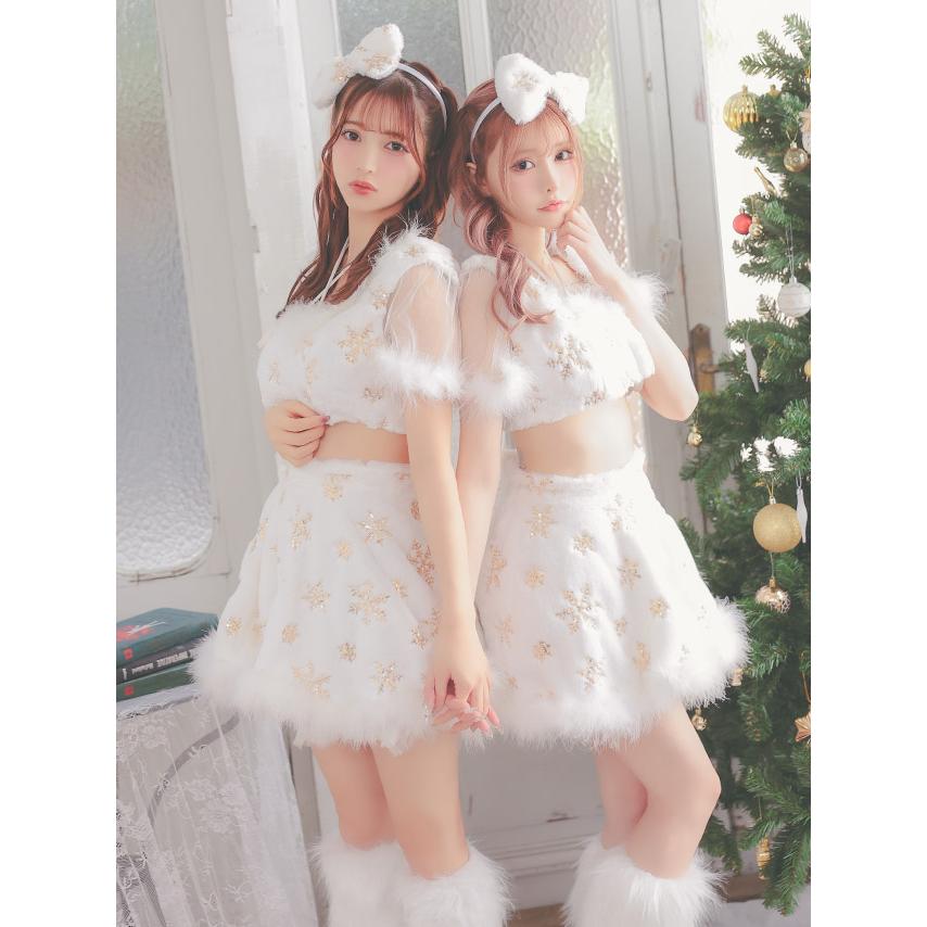 Tika サンタ コスプレ サンタコス 3点set クロスネックリボン へそ出し セパレート フレアスカート ふわもこ スパンコール スノウサンタ コスプレドレス