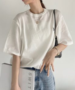 キーワード:ニット セーター レディース クルーネック ワンポイント 七分袖 五分袖
