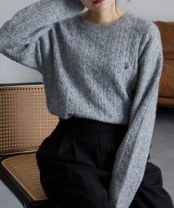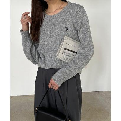 U.S. POLO ASSN. ラナン Ranan <U.S.POLO ASSN./ユーエスポロアッスン> ワンポイントケーブルニット(モクグレー)