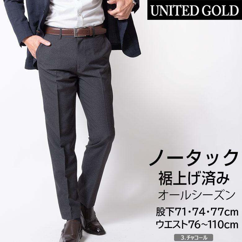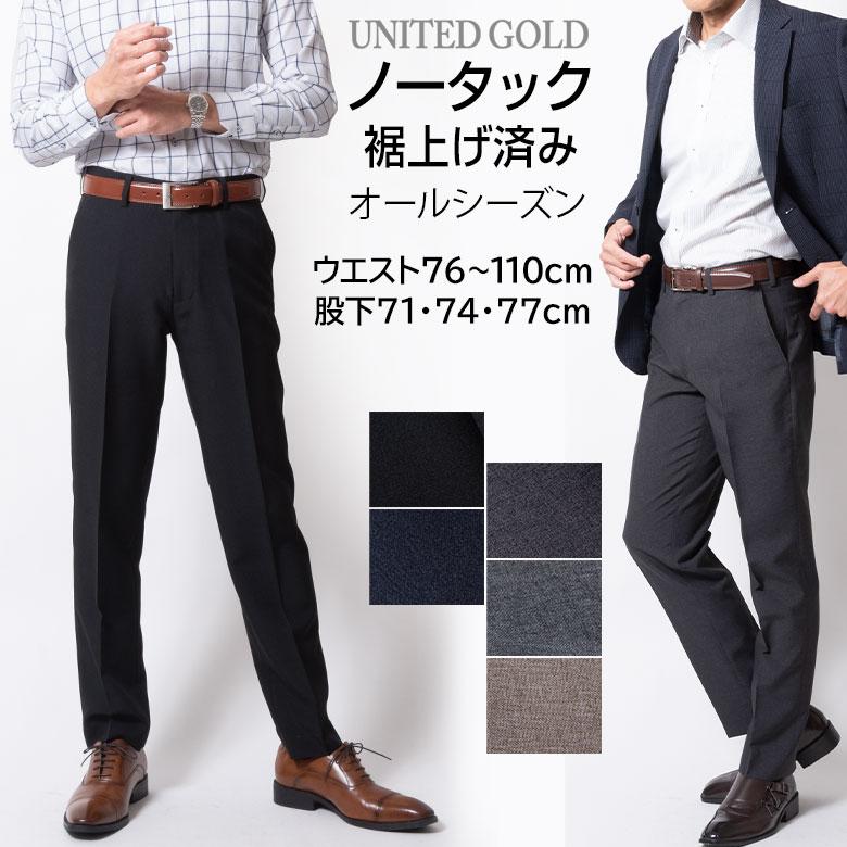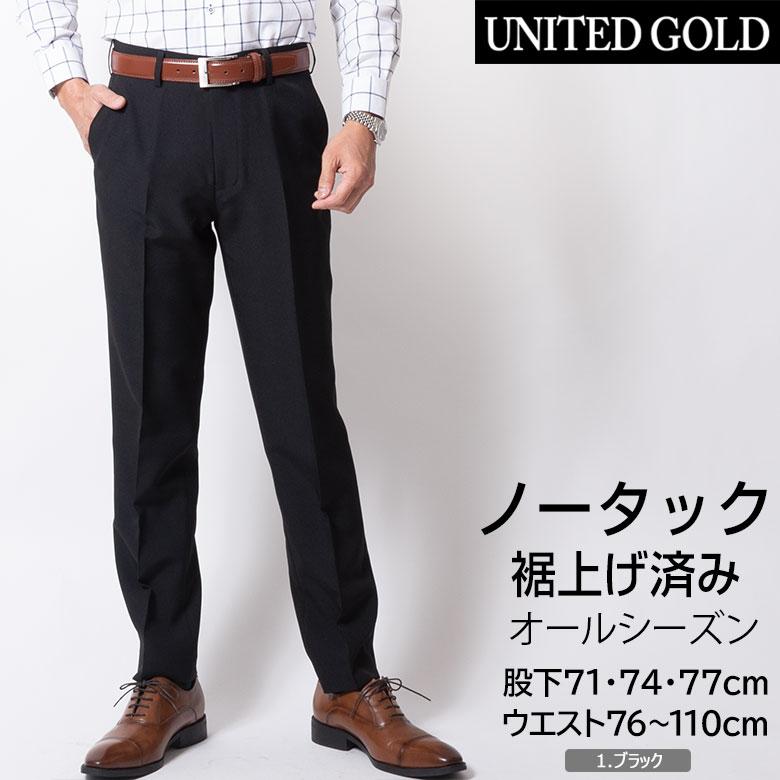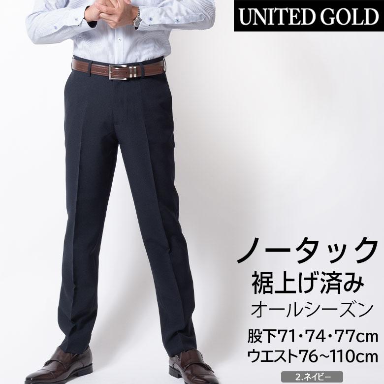 UNITED GOLD スラックス メンズ 裾上げ済み ビジネス パンツ ズボン 春 夏 秋 ノータック すそ上げ済み 股下71cm 股下74cm 股下77cm 洗える ゴルフ 爆買