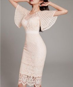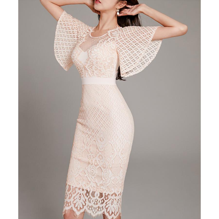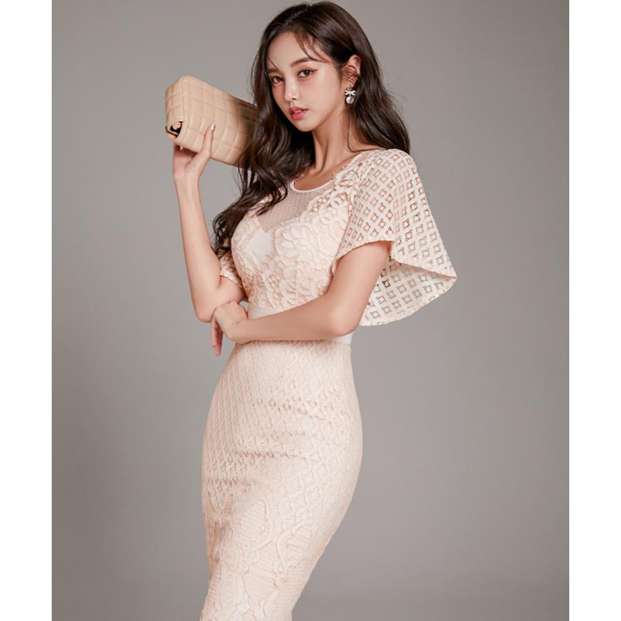 Village H&T 総レース タイトワンピース レディース 透け感スリーブ 上品エレガント 春夏 S〜XLサイズ