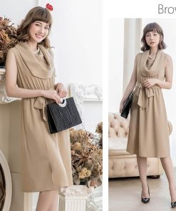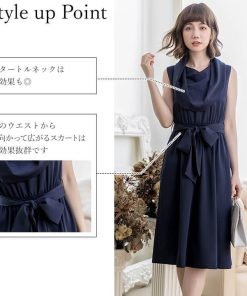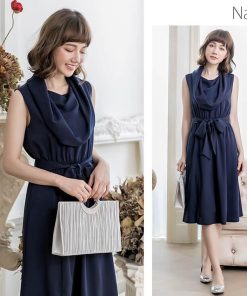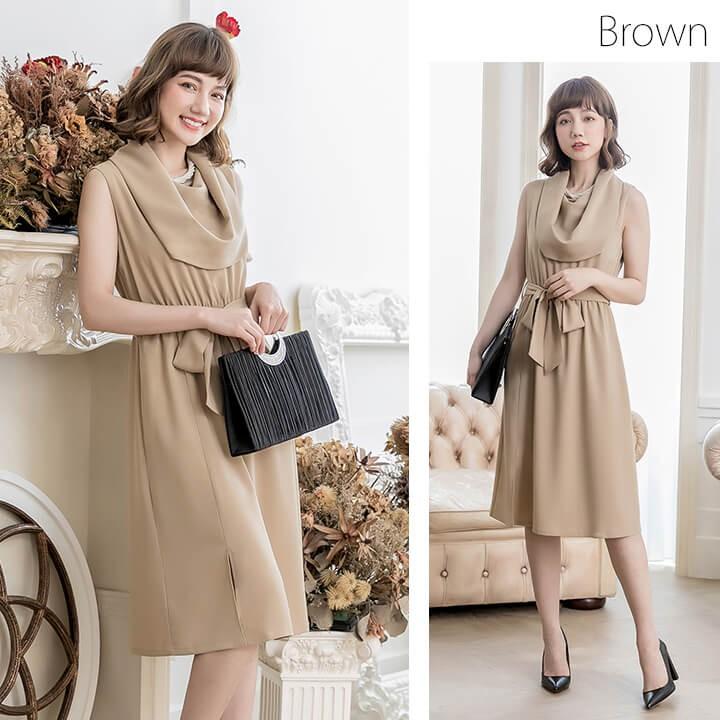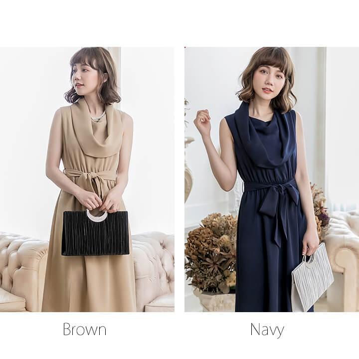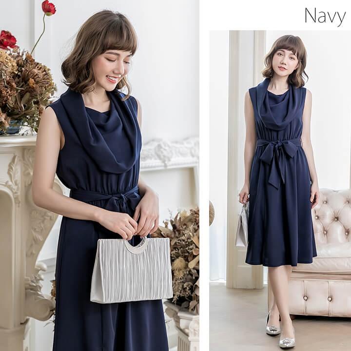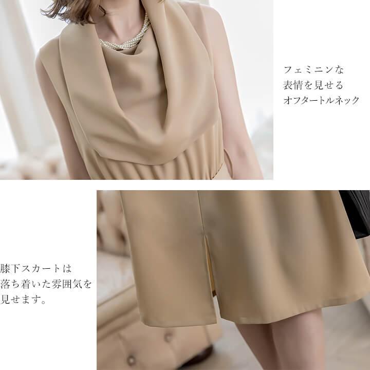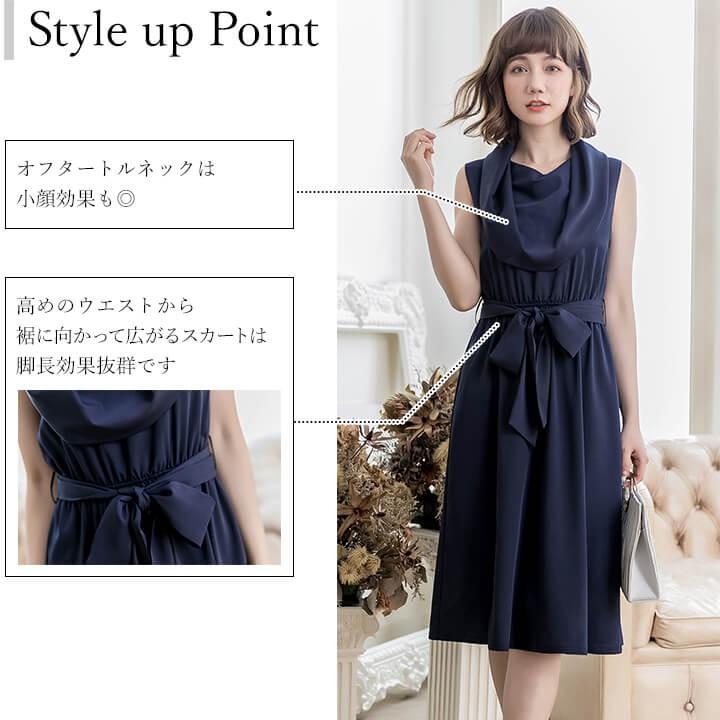 優雅なオフタートルネックと膝下スカートが程よい甘さのミディアムドレス。