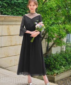 GIRL DRESS FOR NOW ドレス シフォン・レース袖フリルバックリボン フレア ロング 結婚式 ワンピース パーティードレス オケージョンドレス お呼ばれ 二次会 成人式 同窓