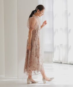 GIRL DRESS FOR NOW ドレス パールベルト付きカシュクール風レース切替え フレア ロング 結婚式 ワンピース パーティードレス オケージョンドレス お呼ばれ 二次会 成人式